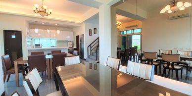 每棟皆有兩個大客廳及兩個餐廳,可烤肉可唱歌、有最新 PS4 遊戲機及遊戲(可四人共遊)、Apple TV 超高畫質電影、兩桌麻將(含器具)、腳踏車與隔天的早餐